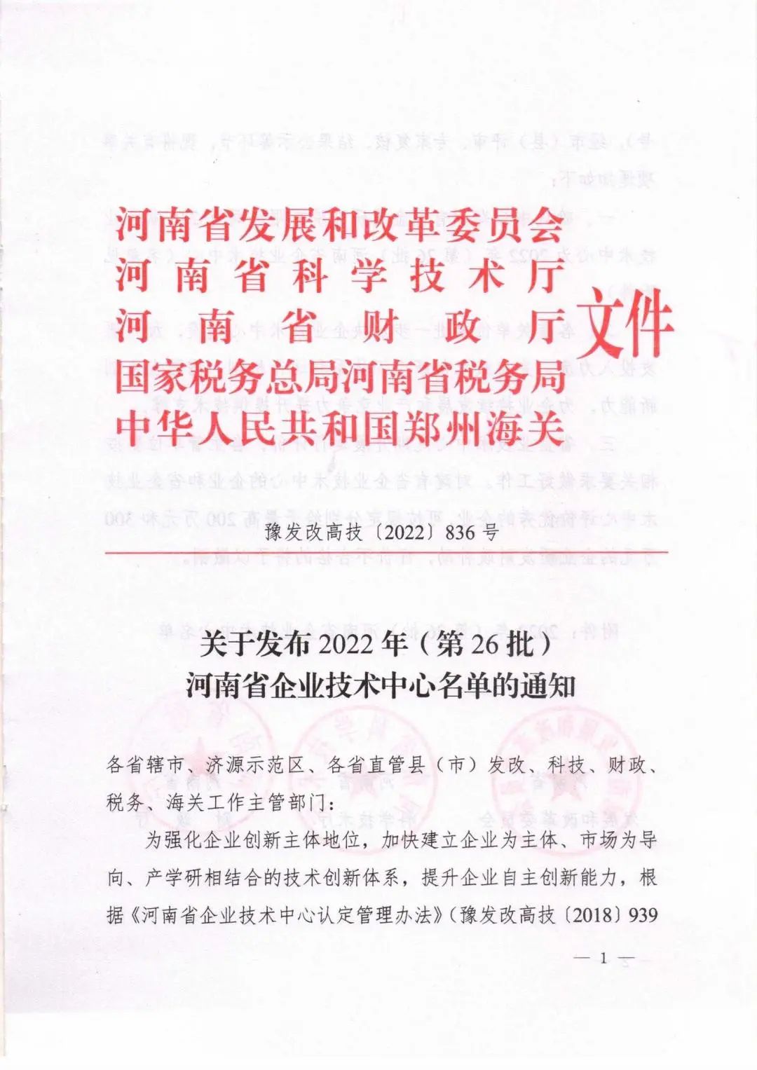 近日,河南省發(fā)改委、科技廳等五個(gè)權(quán)威部門聯(lián)合發(fā)文,公司企業(yè)技術(shù)中心獲批為 河南省企業(yè)技術(shù)中心,是繼2021年度獲批信陽(yáng)市施工技術(shù)工程